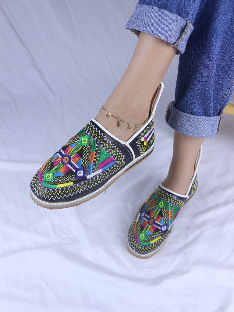 Une broderie vintage réalisée à la machine vient sublimer chaque paire, ajoutant une touche élégante et raffinée inspirée du charme d’antan.