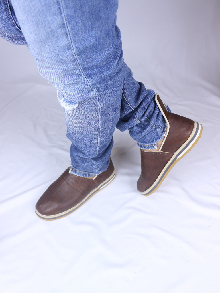Chaque paire bénéficie d’une teinture naturelle appliquée artisanalement, offrant une finition élégante et authentique. Cette technique donne au cuir un caractère unique, rendant chaque modèle légèrement différent.