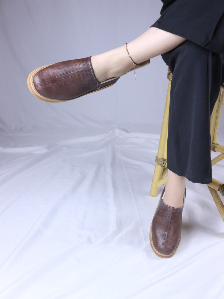 Chaque paire est colorée avec une teinture naturelle, donnant une teinte unique et artisanale qui rend chaque chaussure réellement spéciale et authentique.