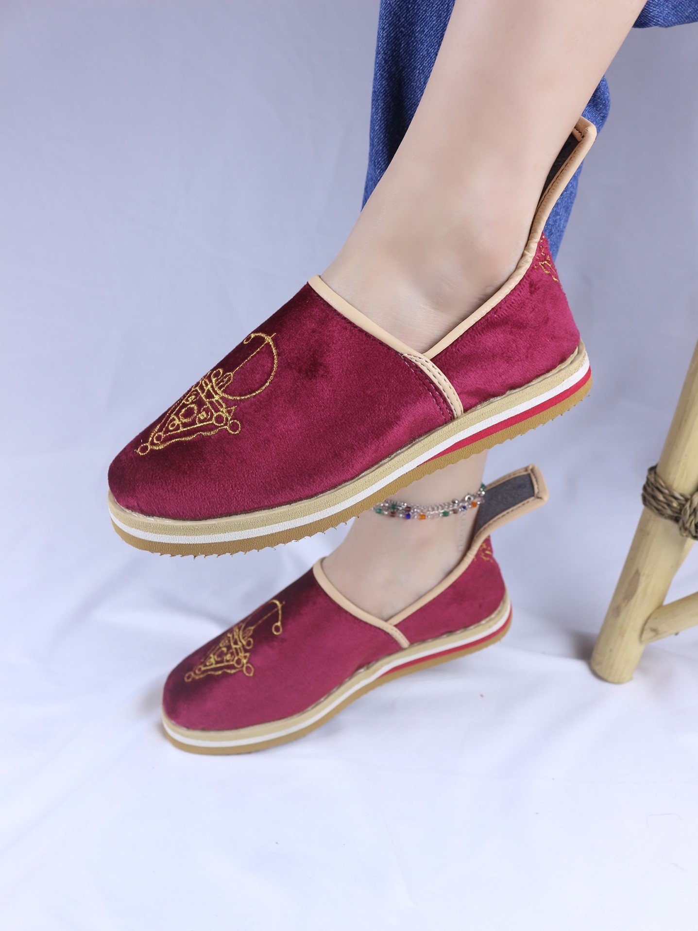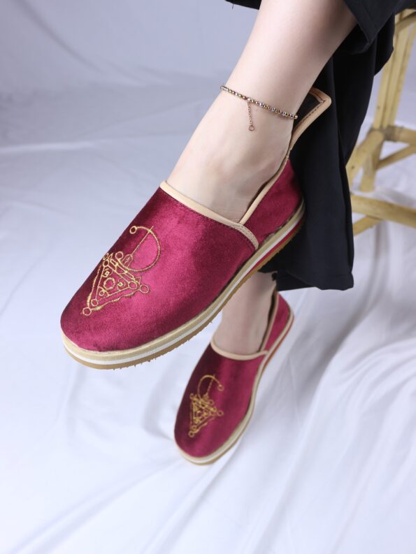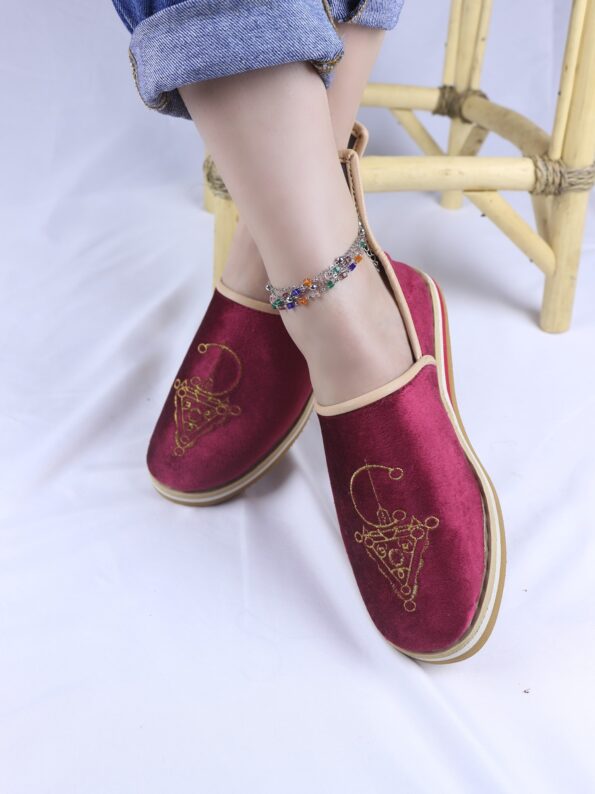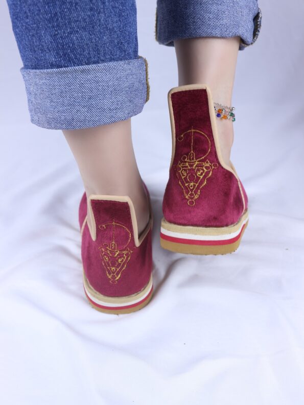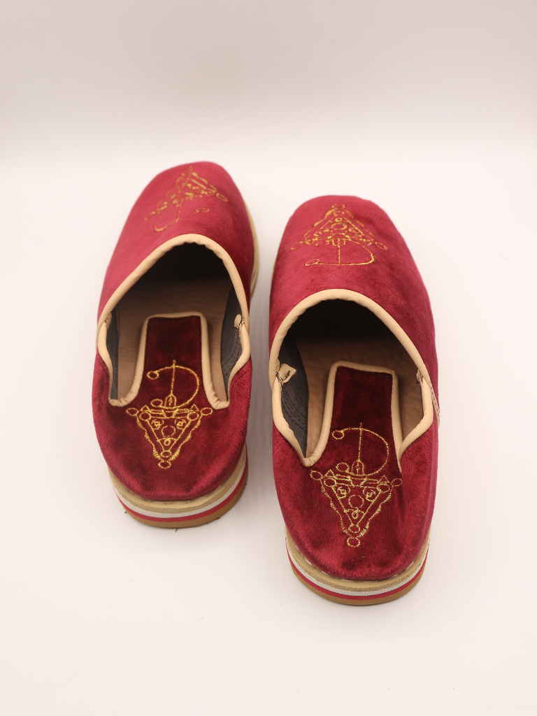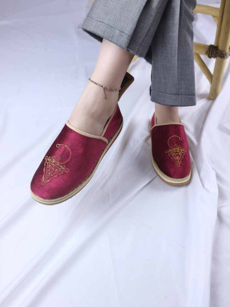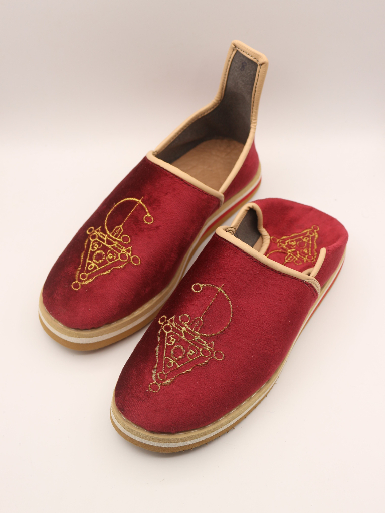 Ornés d’un motif Tazerzit d’inspiration vintage, ces idoukan se distinguent par une touche artisanale authentique. Un détail traditionnel qui apporte caractère et originalité au modèle.